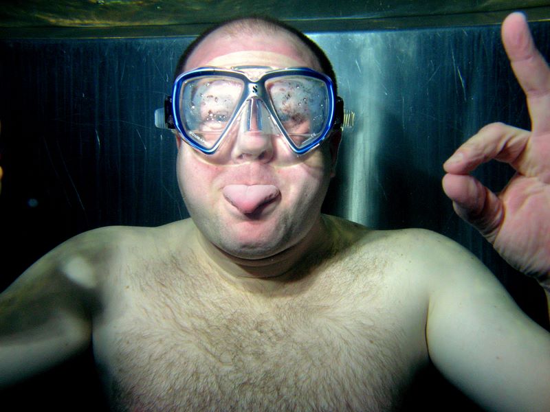I v bazénu se dá fotit. I když to není nic snadného. Zvířená voda, lesklé stěny a nával...
